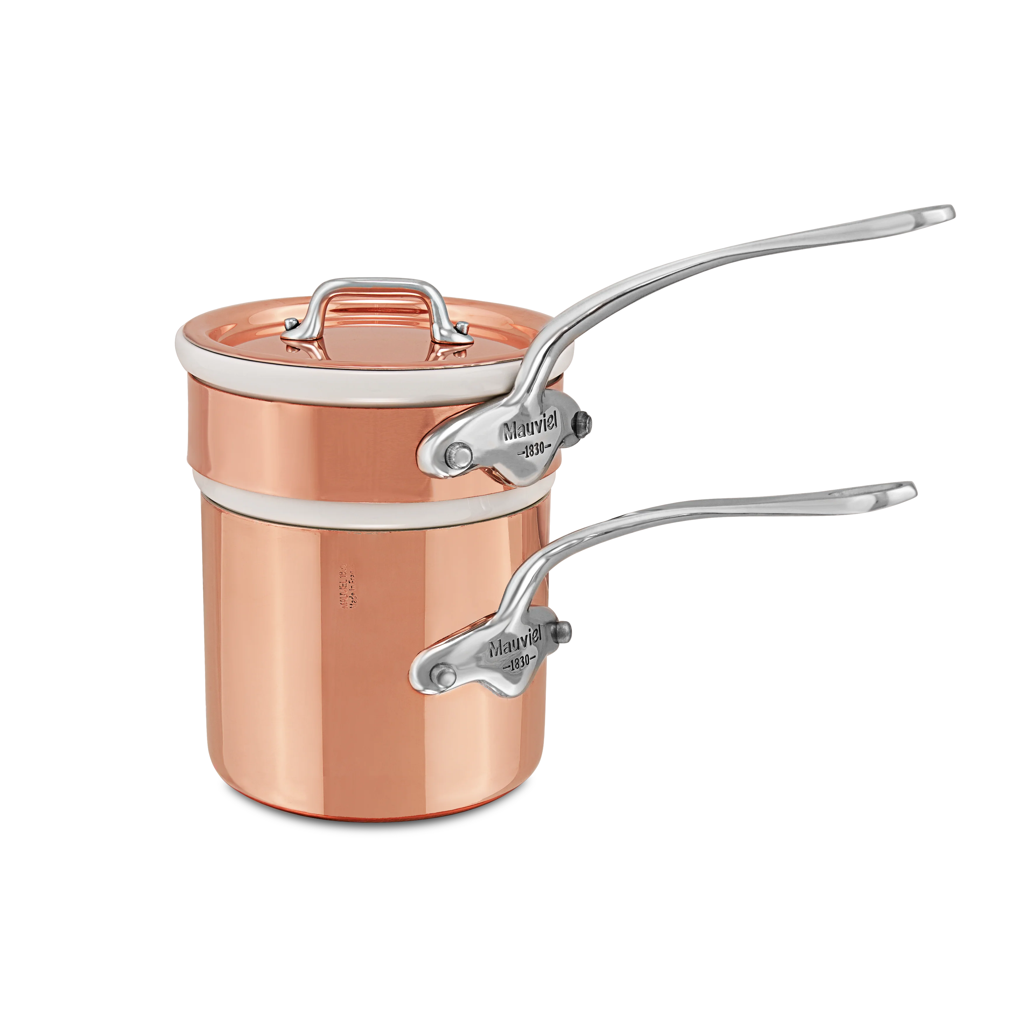 Mauviel Copper Tinned Bain Marie/Double Boiler With Lid, Cast Stainless Steel Handles, 0.9-Qt